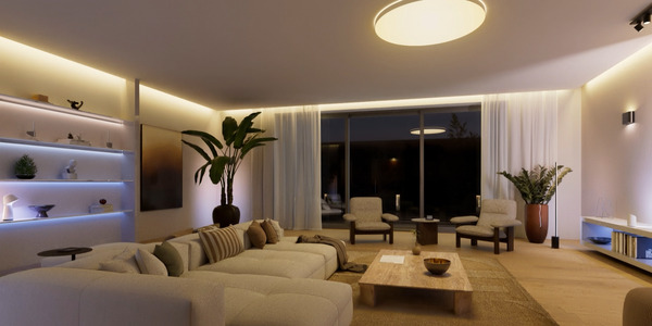Klassische Lichtszenen arbeiten mit festen Farbwerten. SpatialAware™ geht einen anderen Weg. Farben werden räumlich interpretiert. Warme Lichtzonen entstehen dort, wo sie Atmosphäre erzeugen, während andere Leuchten bewusst zurückhaltender agieren.