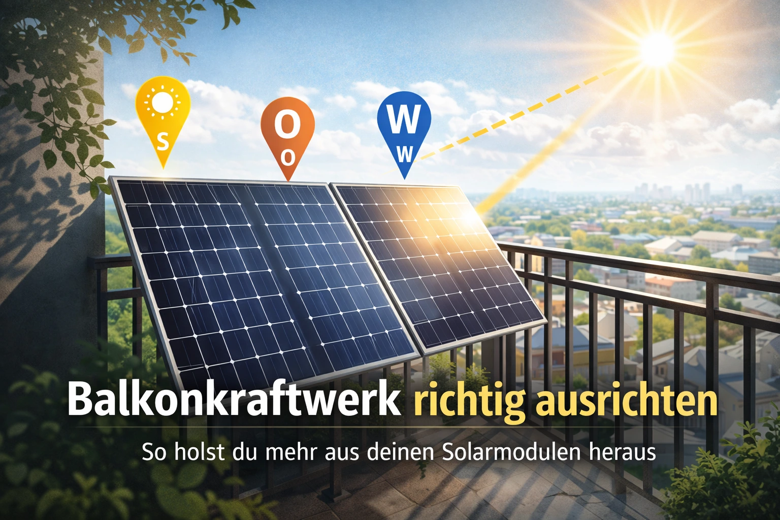 Ein Westbalkon mit viel freier Sonne kann besser sein als ein Südbalkon mit ständigem Schatten. Eine leicht geneigte Montage an einer freien Wand kann sinnvoller sein als ein Modul, das senkrecht hinter einem Geländer hängt. Es kommt also immer auf die reale Situation an und nicht nur auf die Theorie.