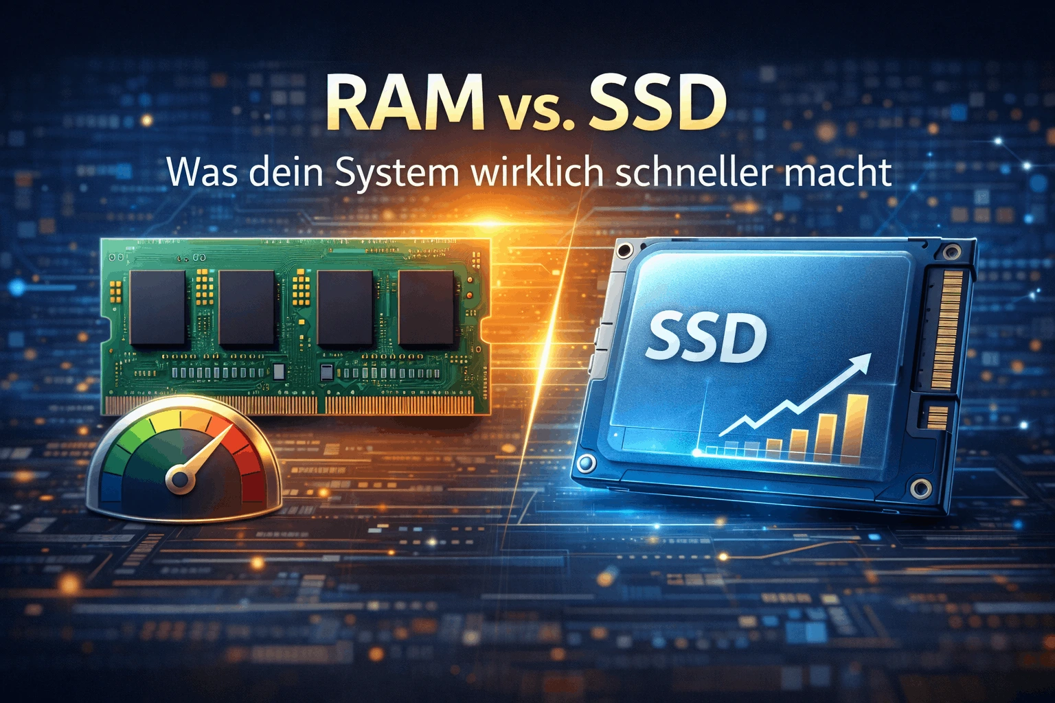 Viele Nutzer wissen, dass „mehr RAM gut ist“ und dass eine „SSD schneller als eine Festplatte“ ist. Doch was genau passiert im Alltag? Warum fühlt sich ein Gerät mit viel RAM manchmal trotzdem langsam an? Und warum bringt eine große SSD keine Geschwindigkeit, wenn der Arbeitsspeicher knapp ist?